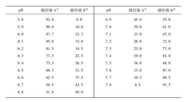 (2)配制中性缓冲液:用混合的两种磷酸盐,pH=6~8;